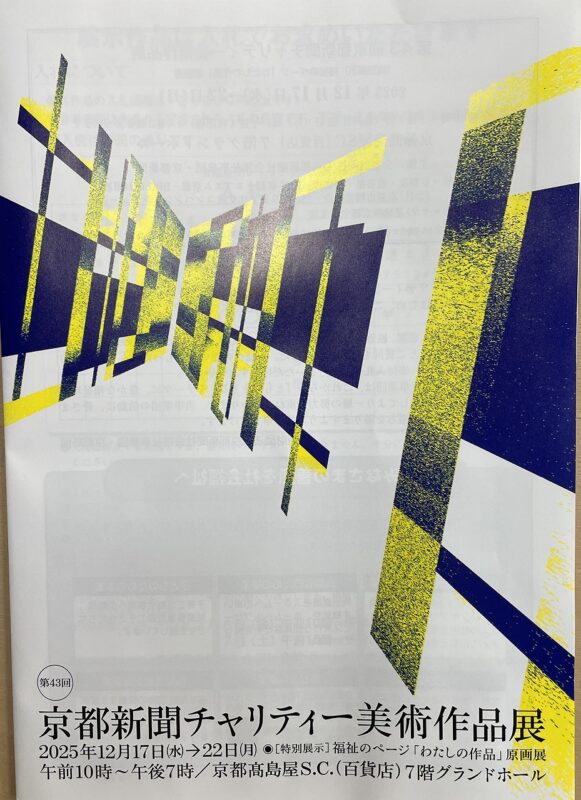 Categories お知らせ イベント 京都新聞チャリティー Post author By 管理人 Post date 2025年12月15日 京都新聞チャリティー 恒例京都新聞社チャリティー美術作品展のご案内です 2025年12月17日(水)から22日(月)午前10時から午後7時京都高島屋S,C(百貨店)7階 \ 最新情報をチェック / FacebookXBlueskyHatenaCopy Tags チャリティー, 恵那市, 東陶房 ← 藤田嗣治展 → 2026